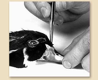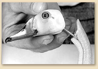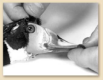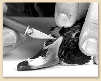 1. Carefully skin around the bill and eyes.